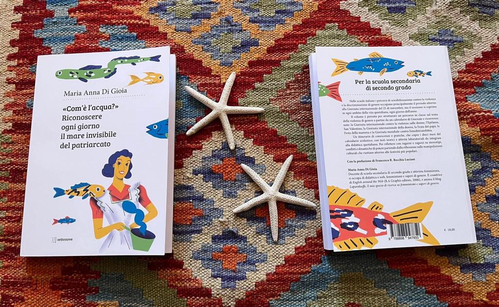 Il 2 febbraio è venuto alla luce un progetto per la scuola a cui ho dedicato moltissimo del mio tempo negli ultimi anni, il libro “Com'è l'acqua? Riconoscere il mare invisibile del patriarcato”, pubblicato dalla casa editrice Settenove. Un lavoro nato dalla necessità di mettere ordine tra le cose che stavo leggendo, su cui mi stavo formando e stavo riflettendo riguardo alla violenza di genere, i femminismi, la mascolinità tossica, i saperi di genere, nelle loro numerose sfaccettature, e dalla consapevolezza dell’urgenza di renderle fruibili in classe.