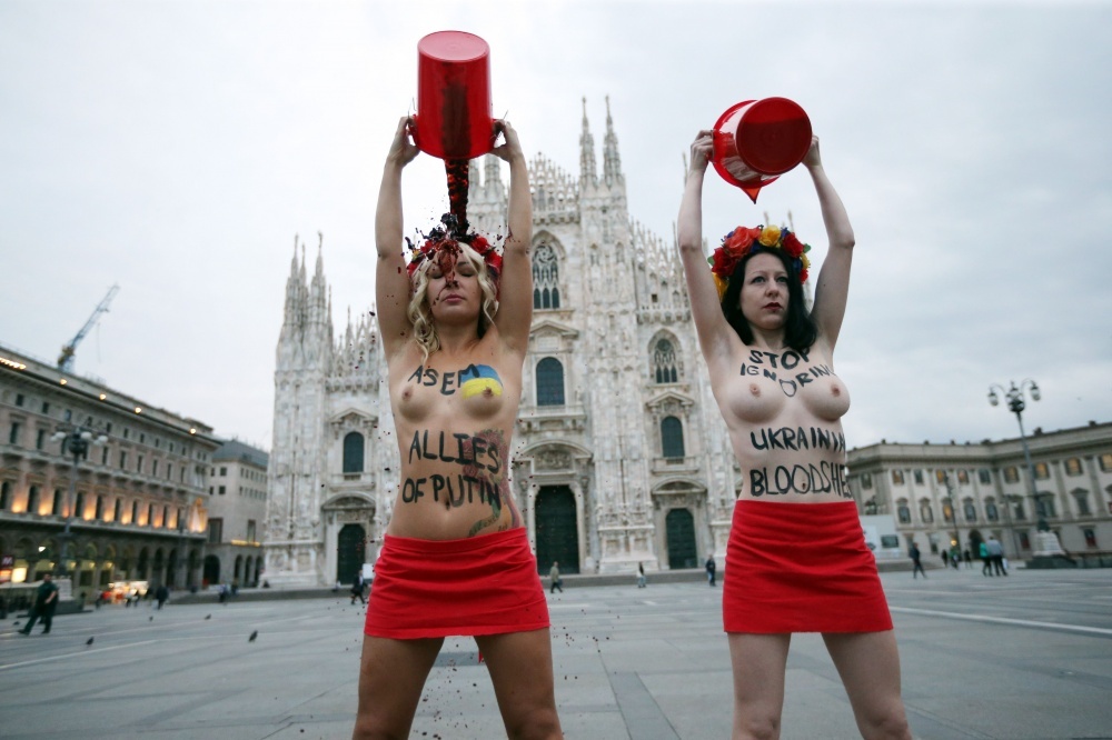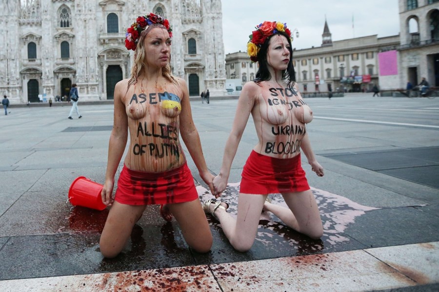 Nell’ottobre 2014 le Femen tennero un’altra manifestazione a Milano, dove si stava tenendo il vertice euroasiatico, detto ASEM (Asia-Europe Meeting), incentrato sulle relazioni economiche fra i Paesi partecipanti. Al vertice, presieduto da Renzi, allora Presidente del Consiglio in Italia, erano presenti 27 stati su 28 dell’UE, oltre a Australia, Bangladesh, Brunei, Cambogia, Cina, India, Indonesia, Giappone, Corea del Sud, Laos, Malesia, Mongolia, Birmania, Nuova Zelanda, Norvegia, Pakistan, Filippine, Russia, Singapore, Svizzera, Thailandia, Vietnam, la Commissione Europea e il secretariato ASEAN (Associazione delle Nazioni del Sud-Est Asiatico). Obama partecipò da remoto. La situazione in Ucraina era già molto calda all’epoca, tanto che il tema era nell’agenda del vertice. La tregua raggiunta in quel periodo era stata più volte violata e veniva denunciata la presenza di truppe russe nell’est del paese. Il presidente ucraino Poroshenko e il presidente russo Putin si incontrarono in un meeting ufficiale, presieduto da Renzi, con il presidente francese François Hollande, la cancelliera tedesca Angela Merkel, il primo ministro inglese David Cameron, il presidente del Consiglio Europeo Herman Van Rompuy e il presidente della Commissione Europea Josè Barroso. Renzi si dichiarò “fiducioso che un incontro con il presidente ucraino porti al «rafforzamento del dialogo» tra Mosca e Kiev”. Già all’epoca tra i temi caldi sul tavolo delle trattative c’erano le forniture di gas russe verso l’Ucraina: il commissario all’Energia per l’Unione Europea Guenther Oettinger, dichiarò che l’Unione era pronta ad affrontare eventuali carenze di gas per quell’inverno (2014/2015) nel caso che la crisi ucraina dovesse fermare il flusso di gas dalla Russia per un periodo di sei mesi.